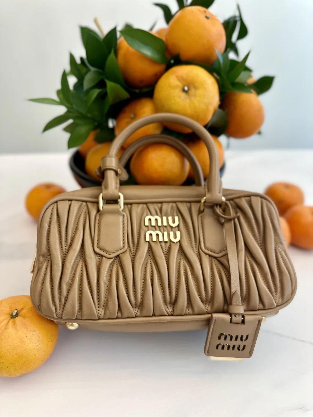 两款包包都用了Miu Miu特色Matelassé皮革搞定手艺,立体的褶皱让优柔的羊皮交错缠绕,酿成一说念说念浅深交错的褶皱纹理,既相沿又优雅。